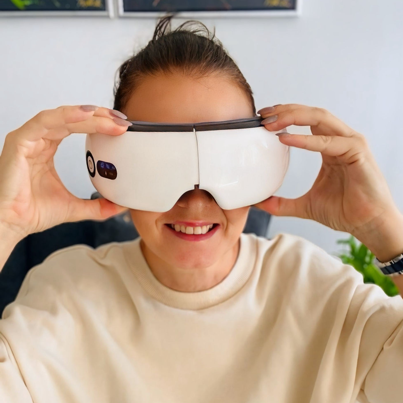 Den rytmiske luftmassage stimulerer forsigtigt blodcirkulationen og aktiverer trykpunkter omkring øjnene – en metode, der er kendt for at lindre spændinger og reducere både hovedpine og migræneanfald.